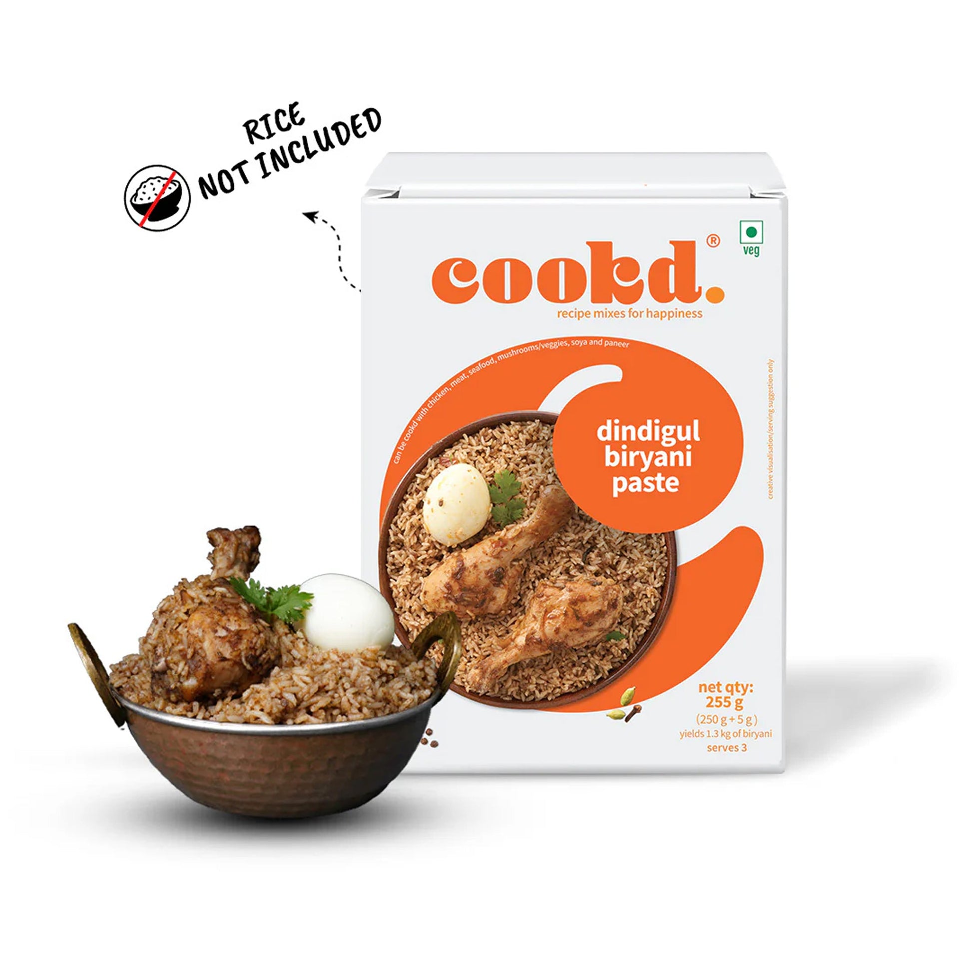 Dindigul Biryani Kit - Experience the true essence of Dindigul with our Biryani Kit. Packed with the bold, tangy, aromatic flavours the biryani city is known for, this kit helps you cook 1.3 kg of authentic biryani in just 20 minutes. Each 505g pack serves 3, bringing restaurant-style taste to your kitchen.