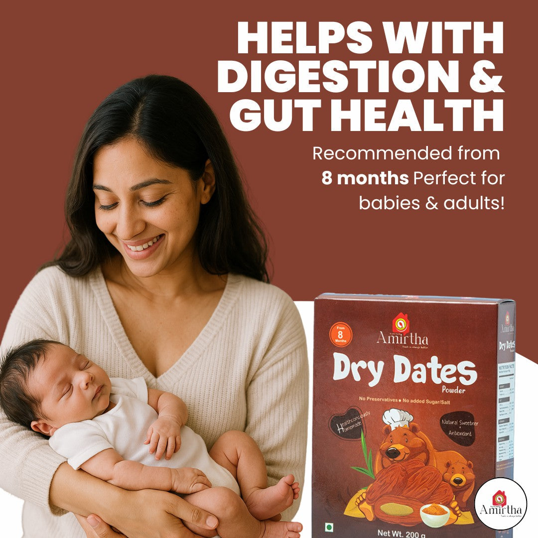 Dry Dates Powder - Enjoy natural sweetness with 100% Pure Dates Powder, made from premium dried dates with zero additives. Rich in iron, calcium, fiber, and minerals, it’s a healthy sugar alternative for all ages. Easy to digest, baby-safe, and an instant energy booster that supports gut, bone, and heart health.