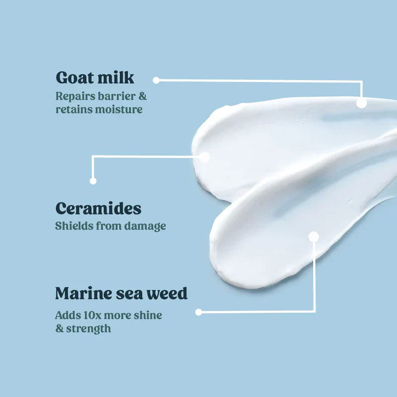Goat milk hair mask, natural hair mask for dry hair, deep conditioning hair mask, goat milk hair treatment, hair mask for frizzy hair, nourishing hair mask, goat milk protein hair mask, hydrating hair mask, natural hair mask India, repairing hair mask.