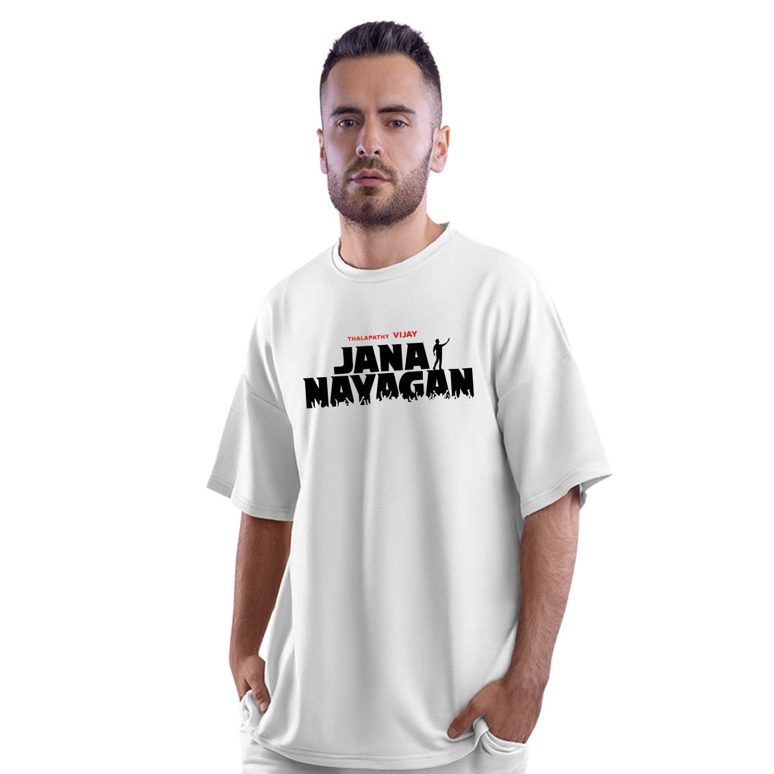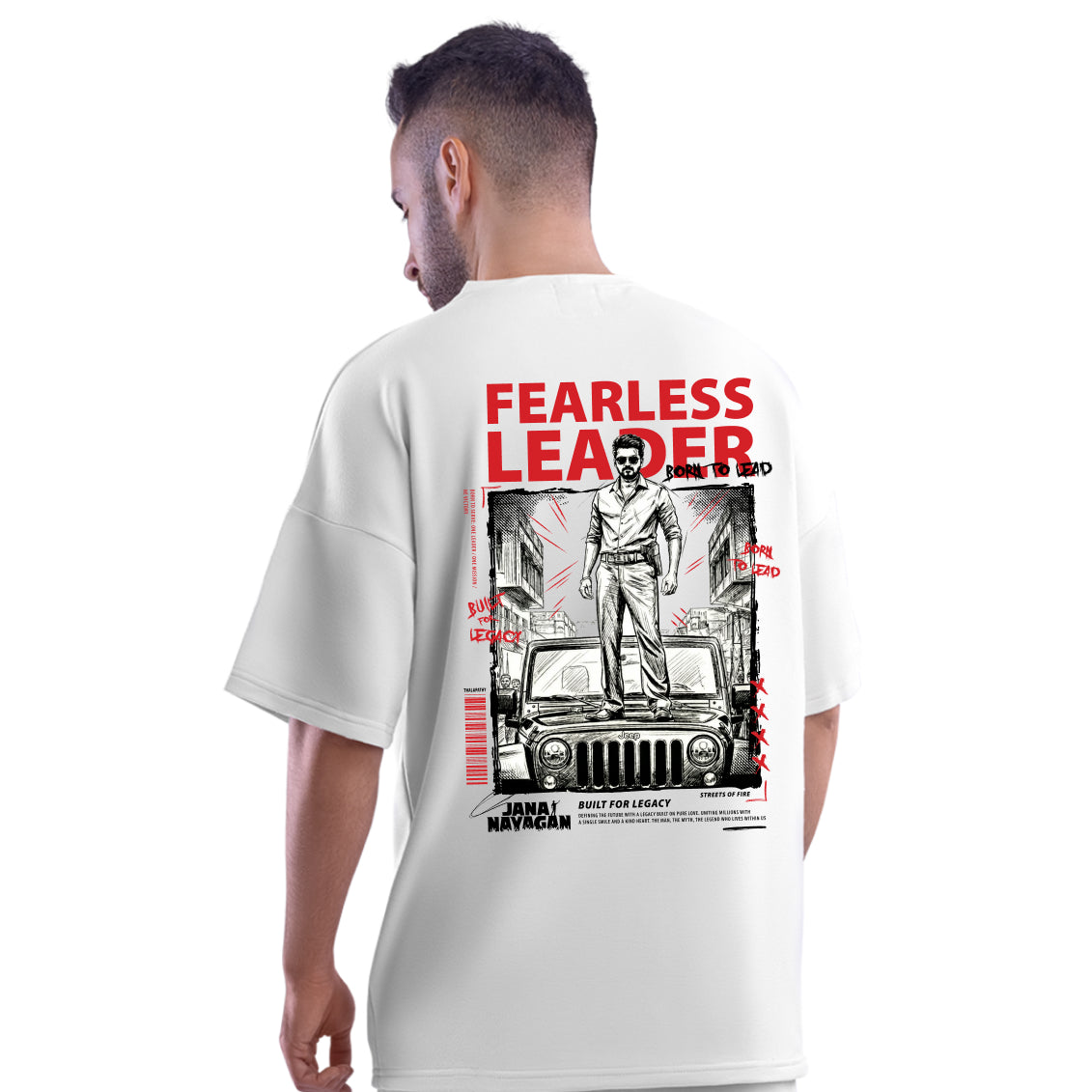 Jana Nayagan Thalapathy Vijay Fearless Leader White Oversized T-Shirt - Dudeme