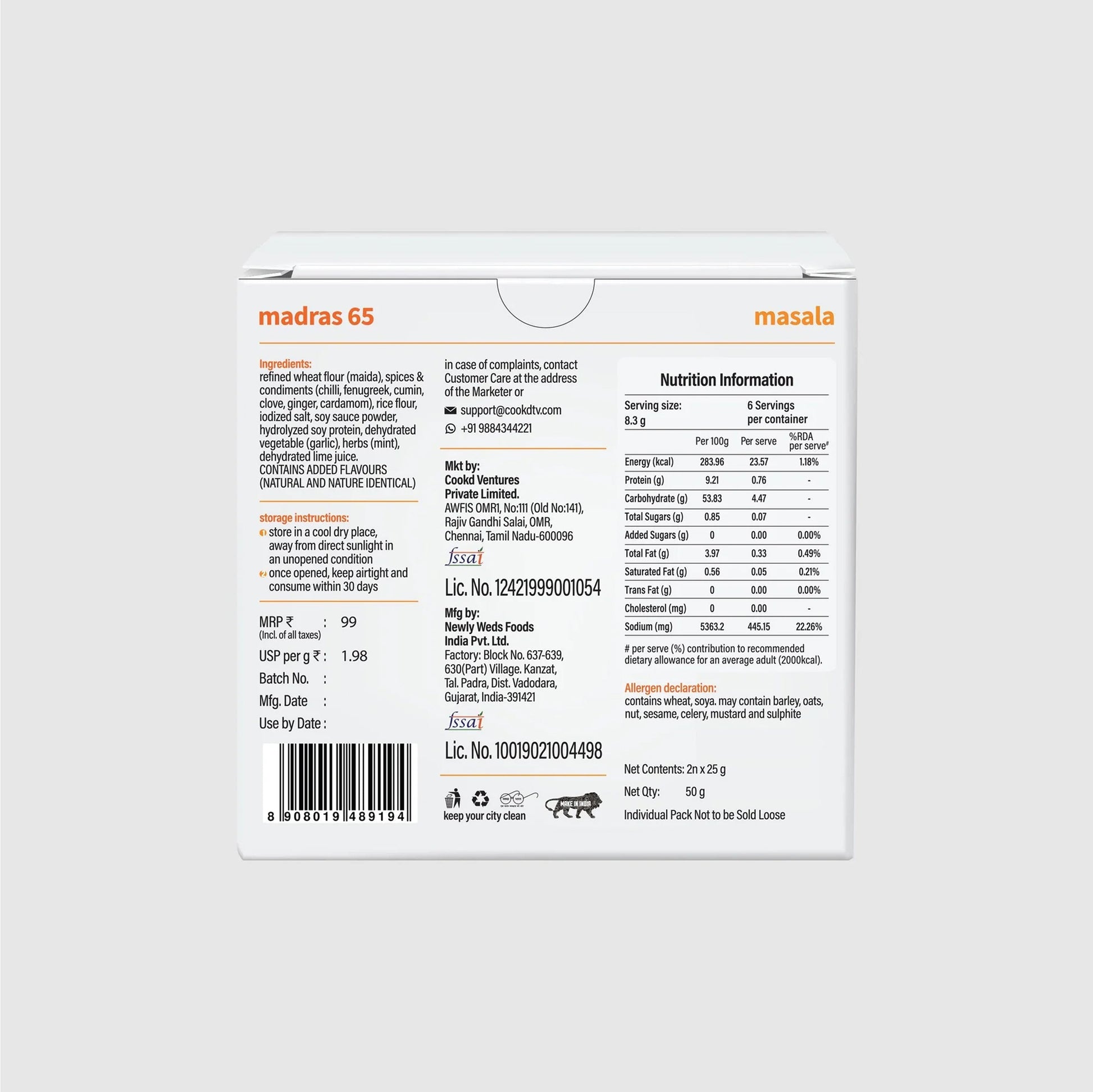 Madras 65 - Add a burst of excitement to your meal with Madras 65! This recipe mix helps you recreate the crispy, spicy Chennai-style classic loved worldwide. Ready in just 8 minutes, each 50g pack serves 6 people (3 per sachet) for the perfect quick-fix starter or side.