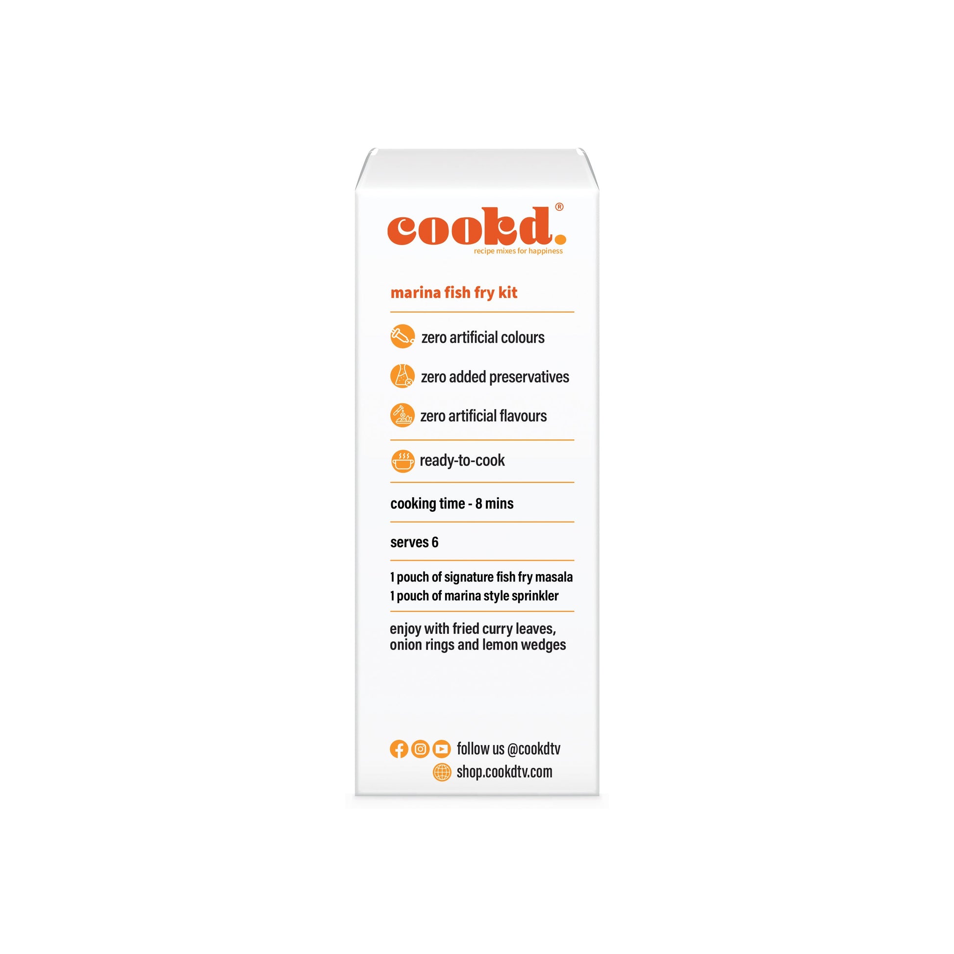 Marina Fish Fry Kit - Enjoy Chennai’s iconic Marina Beach Fish Fry at home in just 10 minutes. This pack includes a fish fry masala and a special marina-style sprinkler that delivers the punchy, tangy, spicy finish beach stalls are famous for. Easy to use marinate, fry, sprinkle, and serve 6 portions of pure nostalgia.