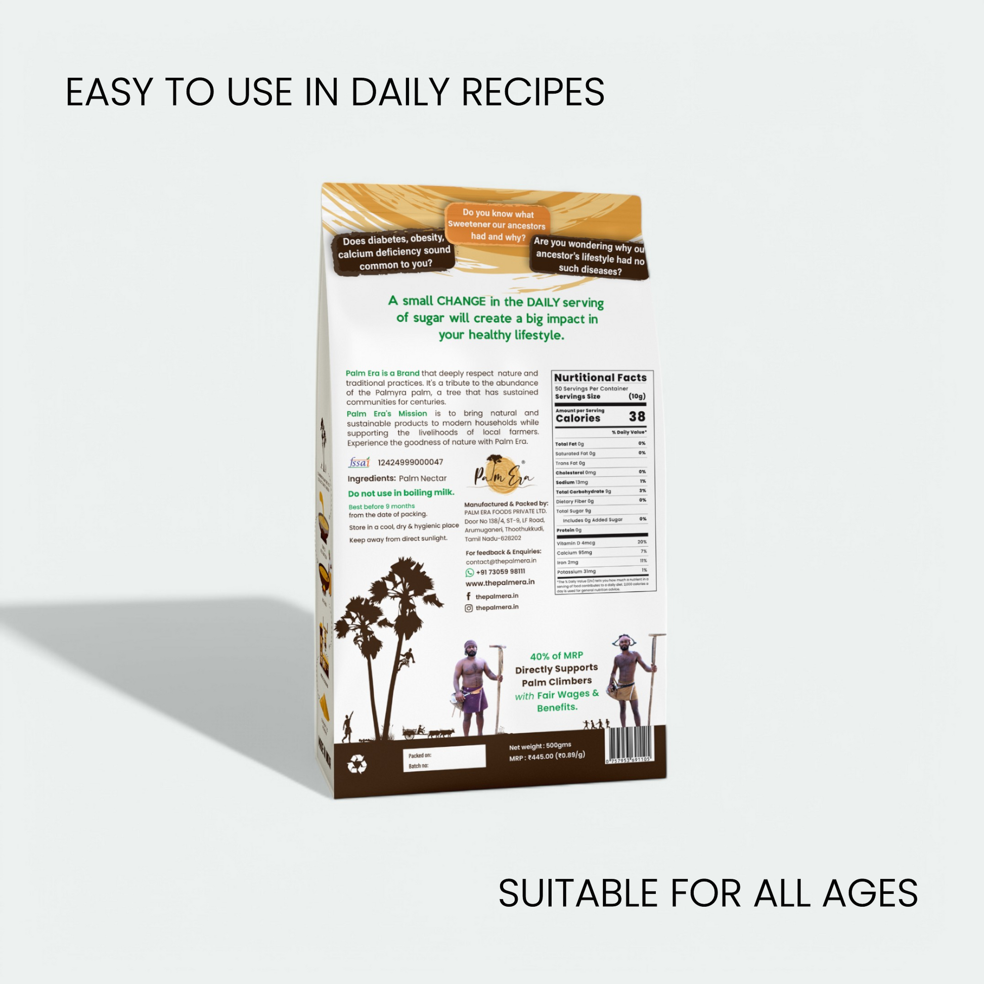 Palm Era’s Mom & Kids Palm Jaggery Powder is a pure, nutrient-rich sweetener made from premium palm sap. With 17+ nutrients, low GI, quick dissolution, and no additives, it’s the healthier everyday choice for kids and families. Perfect for beverages, cooking, and baking.