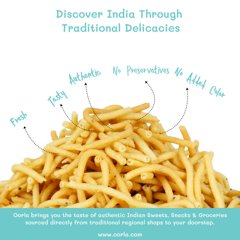 Oorla’s Pulippu Murukku is a tangy, crispy South Indian snack made with rice flour, curd, and a perfect blend of spices. Infused with lemon zest and a dash of green chilies, this authentic Tamil Nadu treat offers an irresistible crunch and flavorful bite.