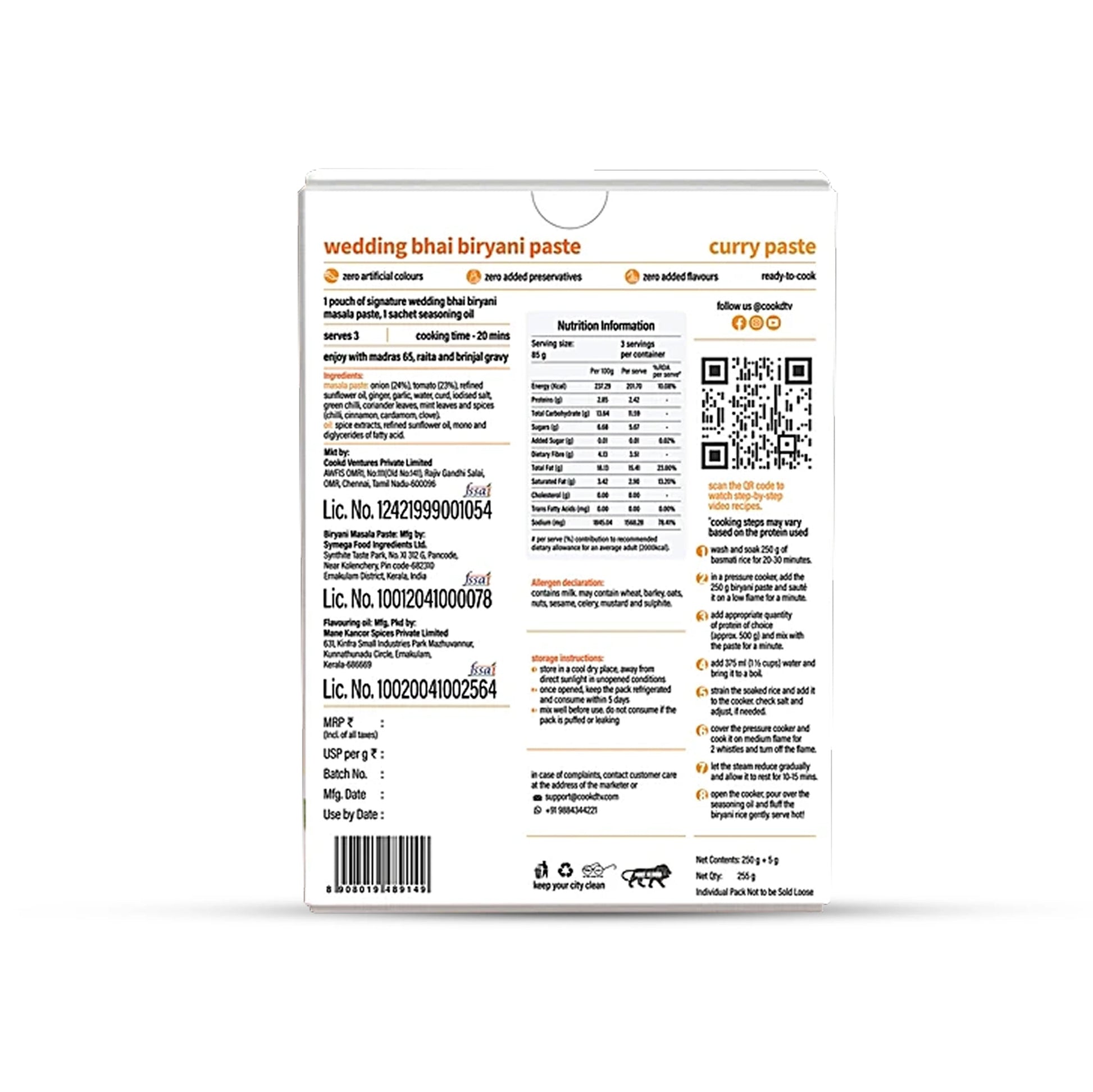 Wedding Bhai Biryani Paste - Make wedding-style biryani at home in minutes! The Cookd Wedding Bhai Biryani Kit comes with perfectly measured spices, premium ingredients, and step-by-step instructions for the rich, aromatic biryani you love. Zero guesswork, full flavour, authentic biryani made effortless.